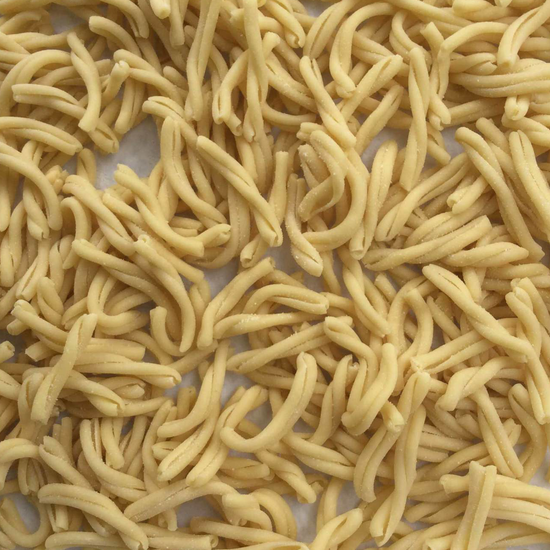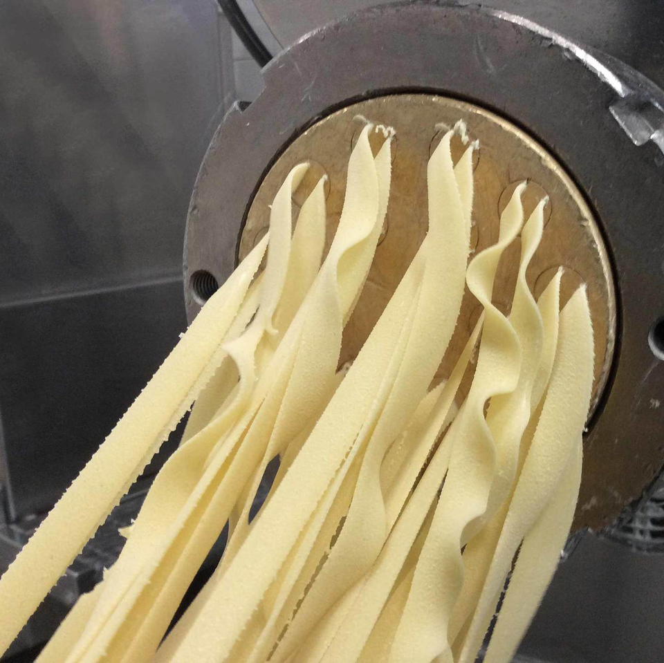 Der Pastateig wird von unseren professionellen Pastamaschinen geknetet und auf traditionelle Weise durch Bronzeformen gepresst. Dadurch entsteht eine raue Teigoberfläche, die Saucen optimal aufnimmt.